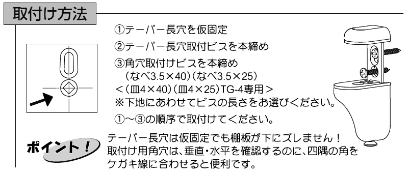 耐荷重性や棚板取付高さ調整に問題が生じるため、別サイズや別種類のグリップと混合しての注文はなさらないでください。